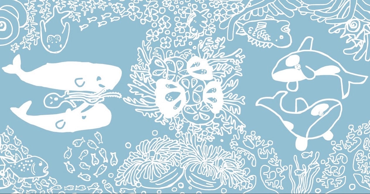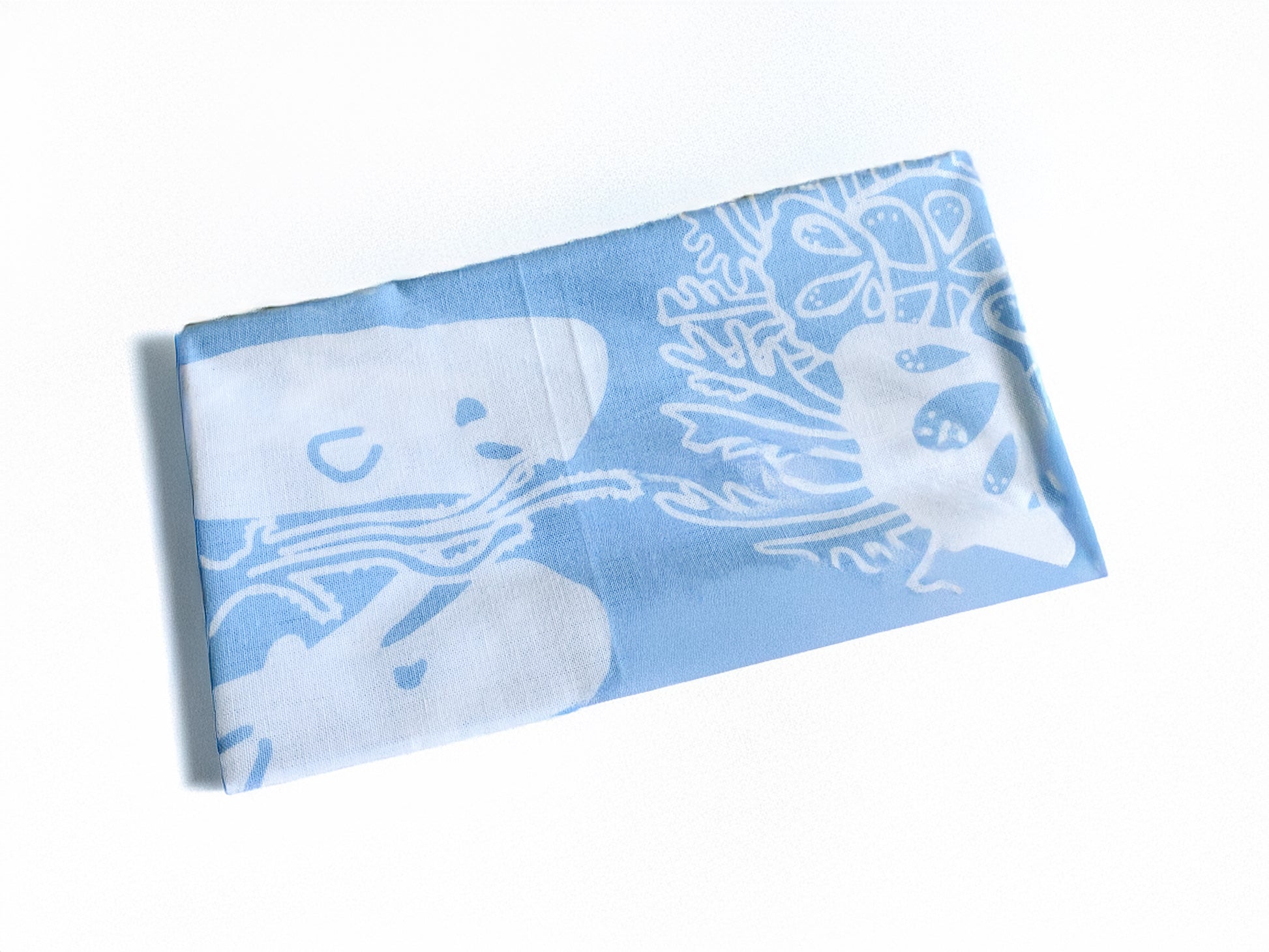 怜子の手書き 海の仲間達手ぬぐい (2025年版 薄い水色)