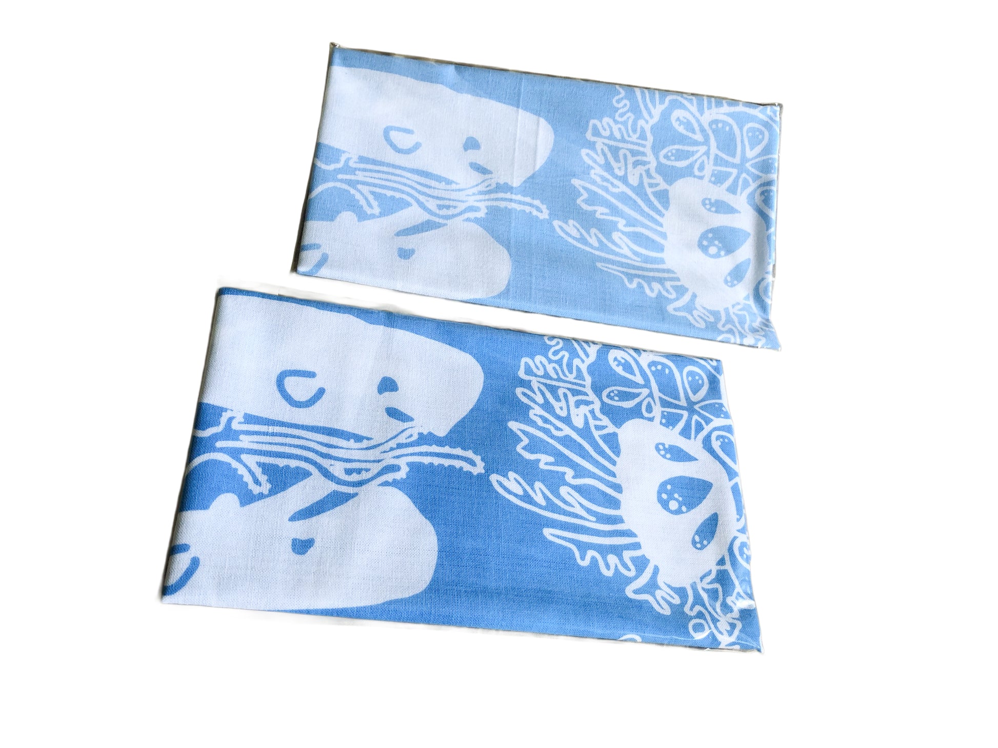 怜子の手書き 海の仲間達手ぬぐい (2025年版 薄い水色と濃い水色のセット)