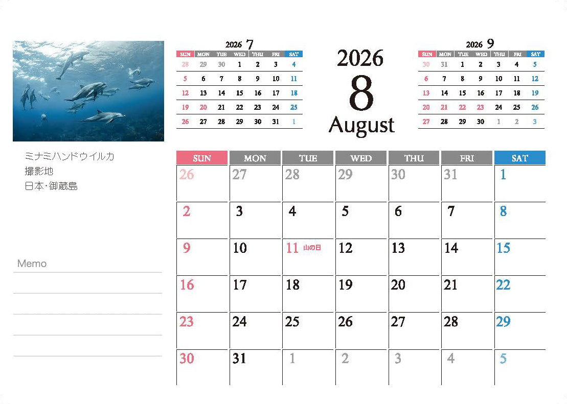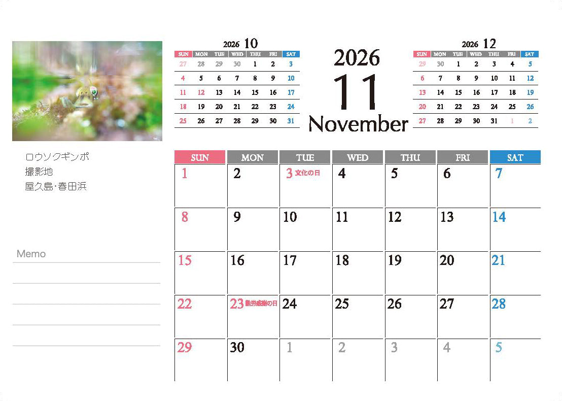- 2026年 A5サイズ(210*168MM)の卓上カレンダーです